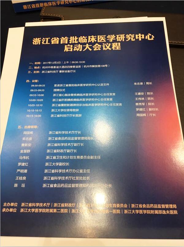 浙江省科學技術廳廳長周國輝、浙江省食品藥品監(jiān)督管理局局長朱志泉、浙江省科學技術廳副廳長曹新安、浙江省財政廳副廳長金慧群、浙江省衛(wèi)生和計劃生育委員會副主任馬偉杭、浙江大學副校長羅建紅等領導、負責人、臨床中心單位代表分別進行大會致辭與愿景承諾。